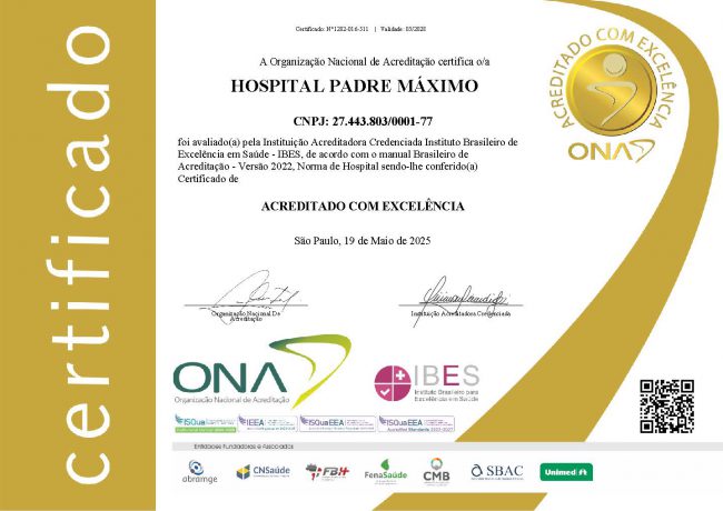 ONA certifica Hospital Padre Máximo com selo Acreditado com Excelência