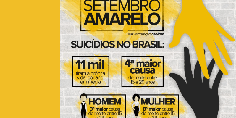 Esses são alguns dados que nortearam, este ano, no país, a campanha Setembro Amarelo, de prevenção ao suicídio. Criada em 2015, é uma iniciativa do Centro de Valorização da Vida (CVV), Conselho Federal de Medicina (CFM) e Associação Brasileira de Psiquiatria (ABP). Desde 2003, o dia 10 de setembro é o Dia Mundial de Prevenção do Suicídio. Este ano, o tema da campanha foi “Trabalhando Junto para Prevenir o Suicídio”. Faz parte das ações iluminar monumentos com luzes amarelas.